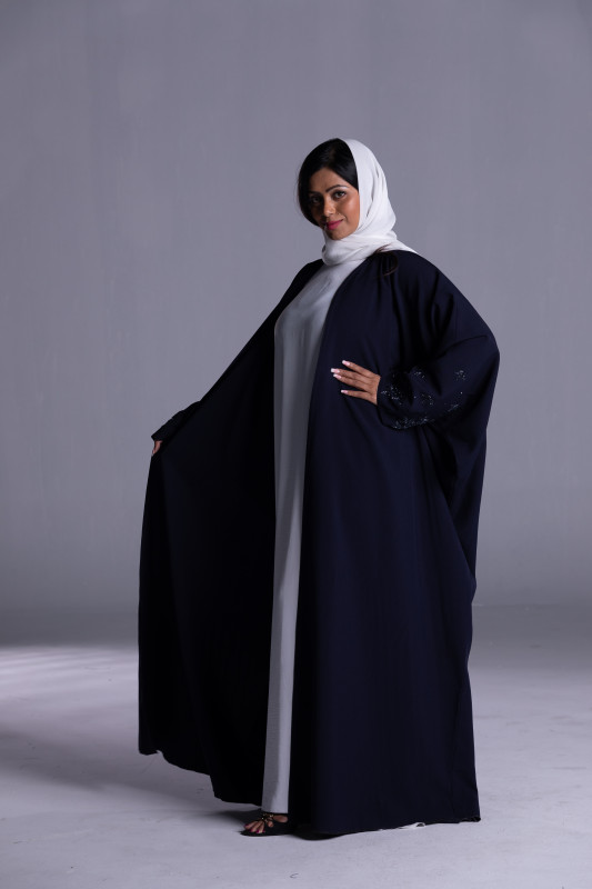 Butterfly (Farrasha) Model Abaya with White embroidery on sleeves. AB1047