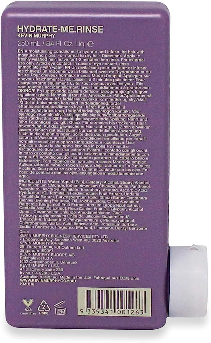 HYDRATE.ME.RINSE is a super smoothing and hydrating rinse for normal to dry hair. It is for hair that just cannot be repaired or hair that is naturally dry or hair that lives in a very dry climate. Think of it as a hair concealer as it disguises the damage. It will nourish dry hair and make split ends unrecognisable. HYDRATE.ME.RINSE contains micro algae for radiance and Kakadu Plum to maintain levels of collagen and elastin, essential for healthy lustrous hair. Instant hydrating and detangling properties from Evening Primrose Oil infuse the hair with moisture and gloss. This formulation is still packed with antioxidants as this gives the hair a healthy glow and stops the hair from losing any more moisture. New technology allows the use of the same ingredients found in high end skincare that diminish the appearance of fine lines and wrinkles, which when applied to hair create a glossy shield that hides any signs of damage and results in a smoother cuticle. How to use: Apply to freshly washed hair, leave for 1- 2 minutes then rinse.