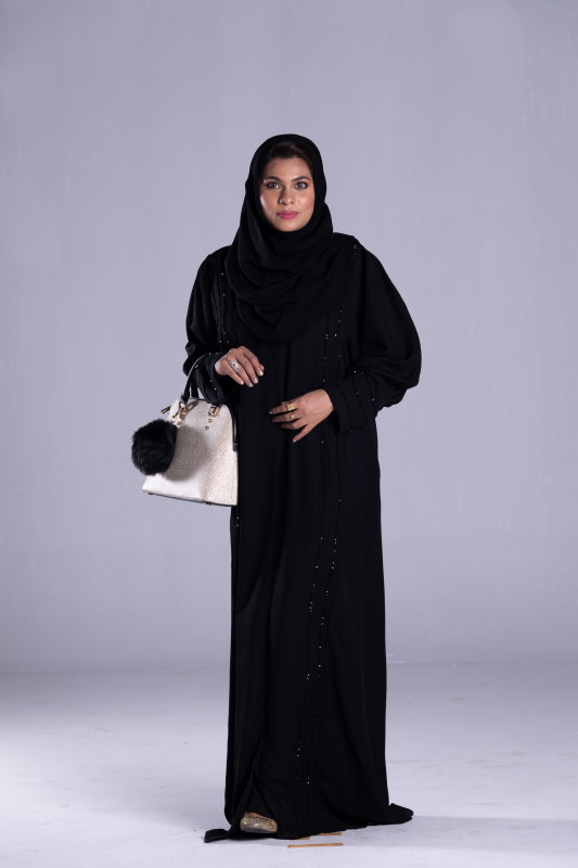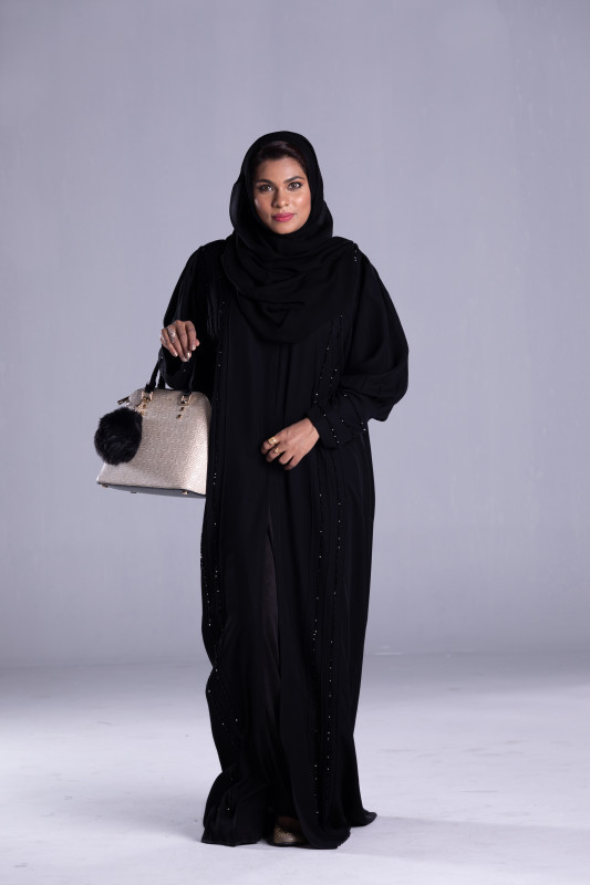 Type: Black Korean Nada Abaya, Custom Color fabric Abaya,Handwork, Black And White, Tailor Designed, Front Open