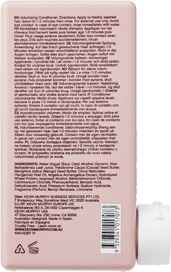 Water (Aqua) (Eau), Cetyl Alcohol, Glycerin, Aloe Barbadensis Leaf Juice, Mangifera Indica (Mango) Seed Butter, Theobroma Cacao (Cocoa) Seed Butter, Citrus Reticulata (Tangerine) Peel Oil , Angelica Archangelica Root Extract, Hydrolyzed Wheat Protein, Behentrimonium Chloride, Cetrimonium Chloride, Maltodextrin, Phenoxyethanol, Isopropyl Alcohol, Dehydroacetic Acid, Benzoic Acid, Potassium Sorbate, Fragrance (Parfum), Limonene, Benzyl Benzoate, Geraniol, Citronellol