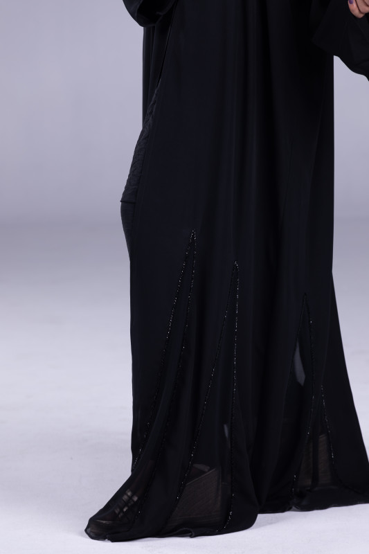 Type: Black Shade Abaya, Custom Color fabric Abaya, Korean Nada fabric, handwork, Beads, Tailor Designed, Front Open