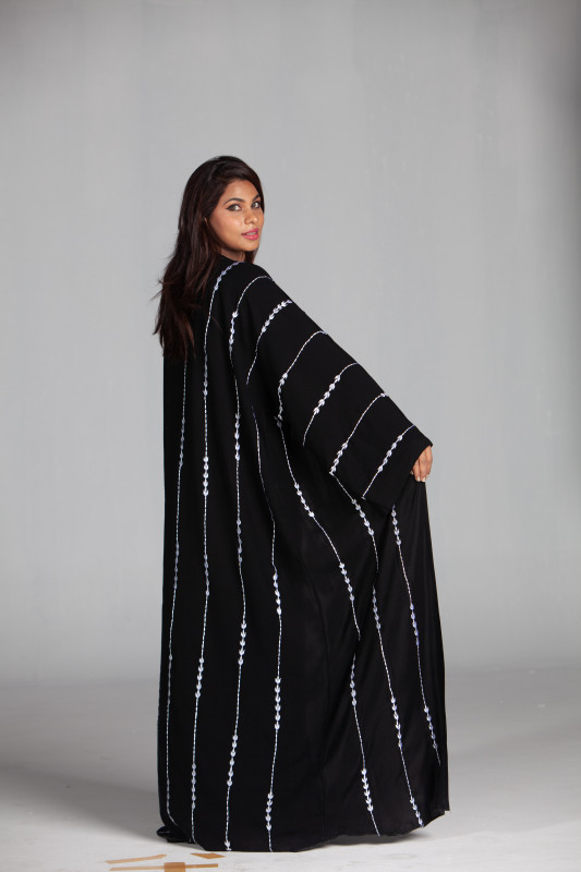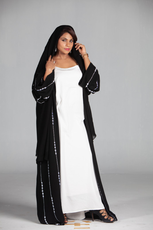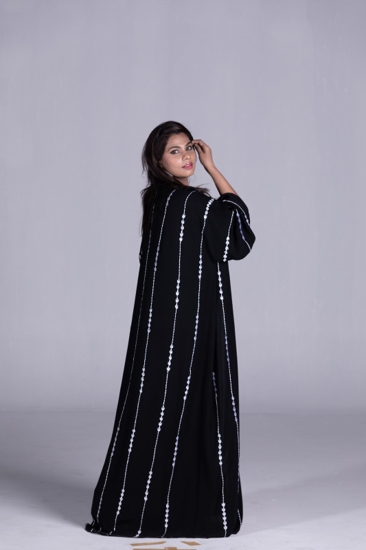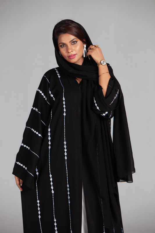 Type: Black Shade Nada Abaya, Hand Embroidery,Black and White, Custom Color fabric Abaya, Tailor Designed, Front Open