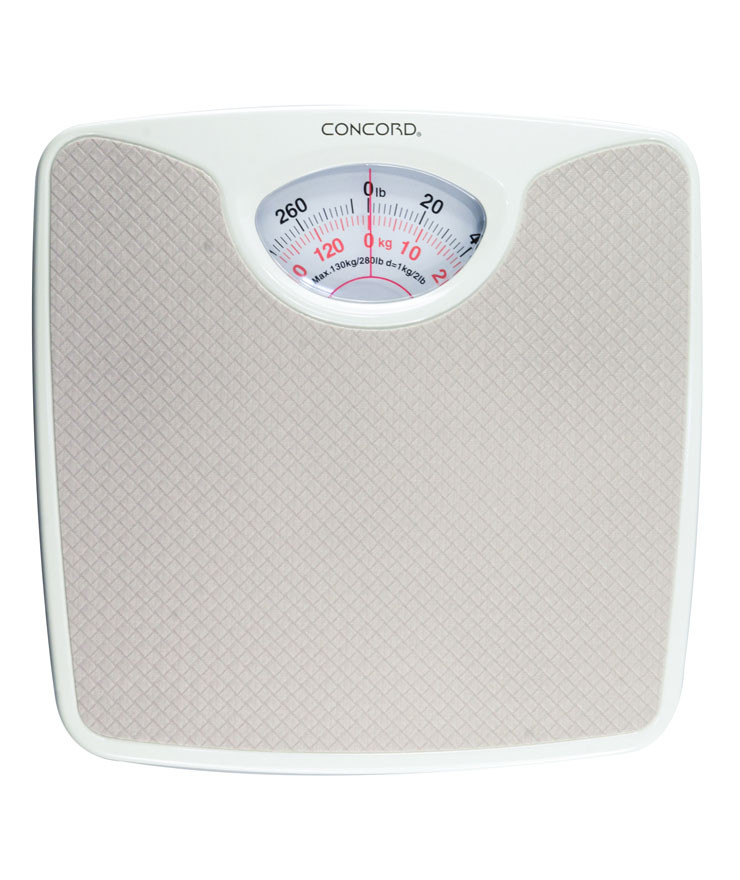 Perfect for hassle-free weight management, this Mechanical Personal Scale from Concord is an ideal addition to any bathroom. Featuring carpet feet, so the scale is suitable for uneven floors, this robust scale is simple and easy to use, simply step on and your weight reading will show. Boasting a maximum capacity of 130 KG and a large platform with generous foot room, the classic scale is suitable for everybody. Change between metric and imperial readings to whichever suits you best.