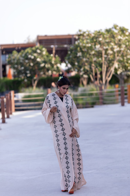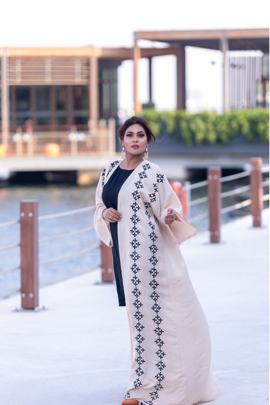 Type: Custom Color Korean Nada fabric Abaya, Blending of Fabric color and Embroidery work color, Tailor Designed, Front Open