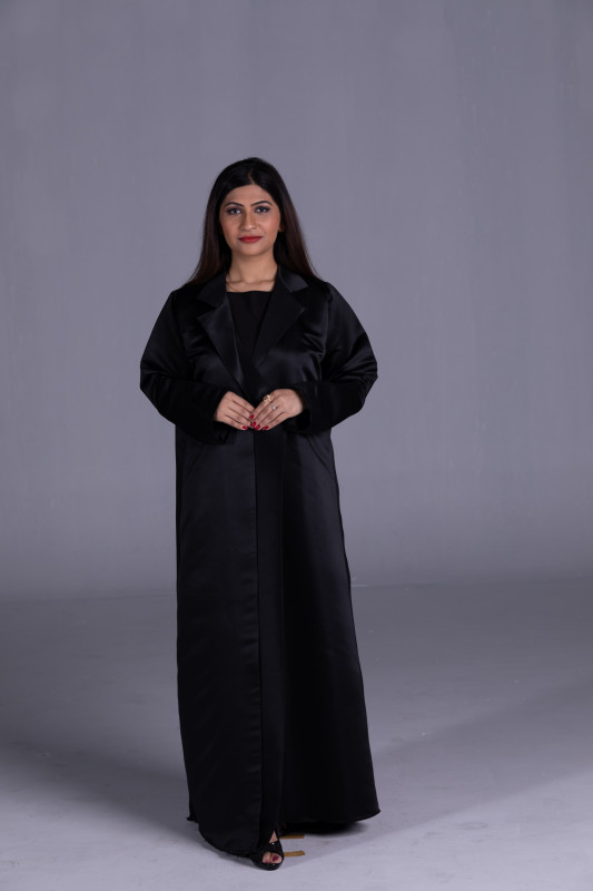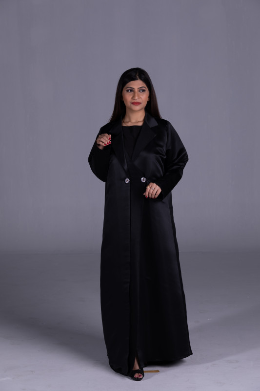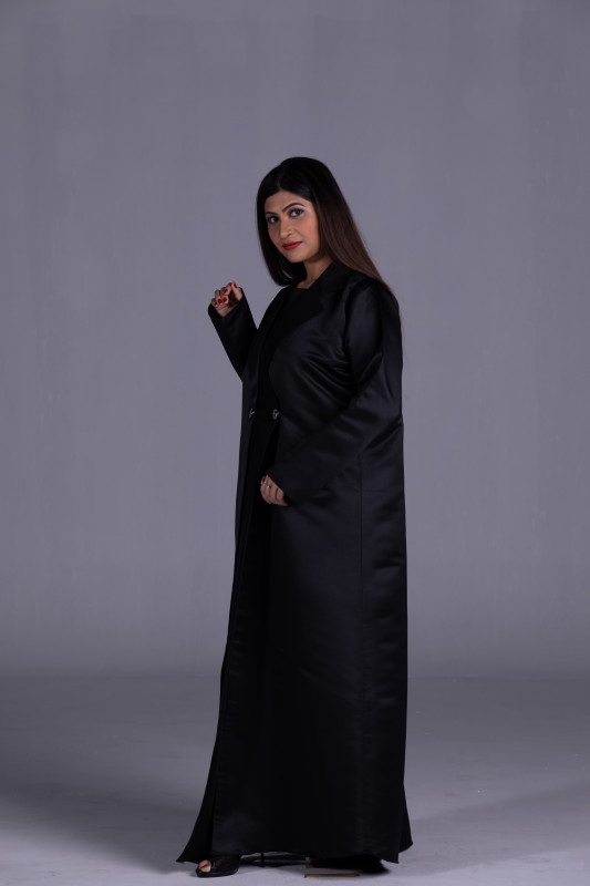Type: Bridal Sattin Black Shade Abaya, Custom Color fabric Abaya, Coat Model, Office Use, Tailor Designed, Front Open