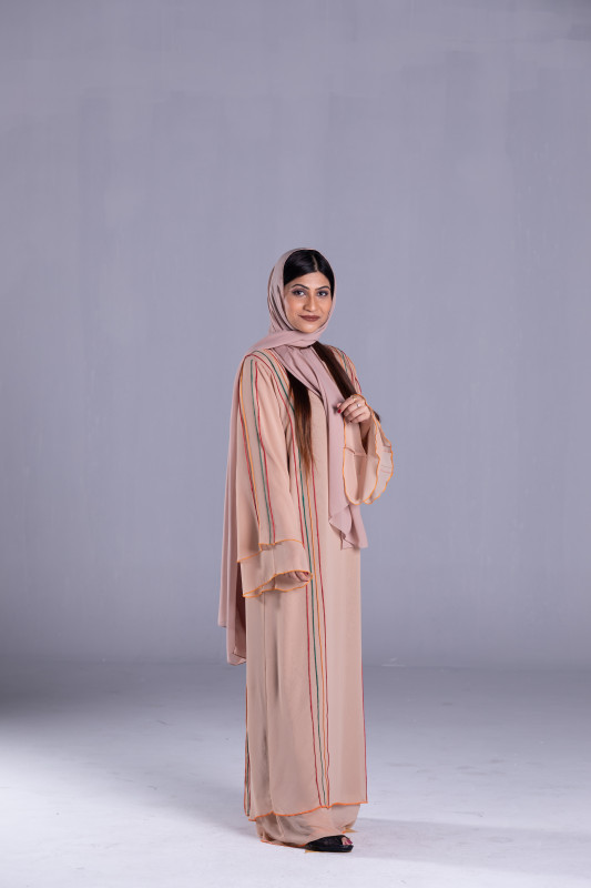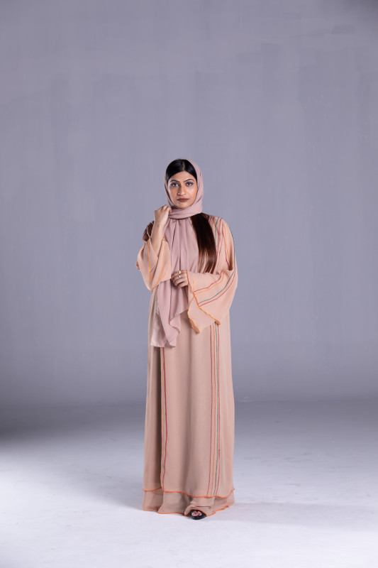 Type: Double Layered Chiffon Abaya, Custom Color fabric Abaya, Tailor Designed, Front Open