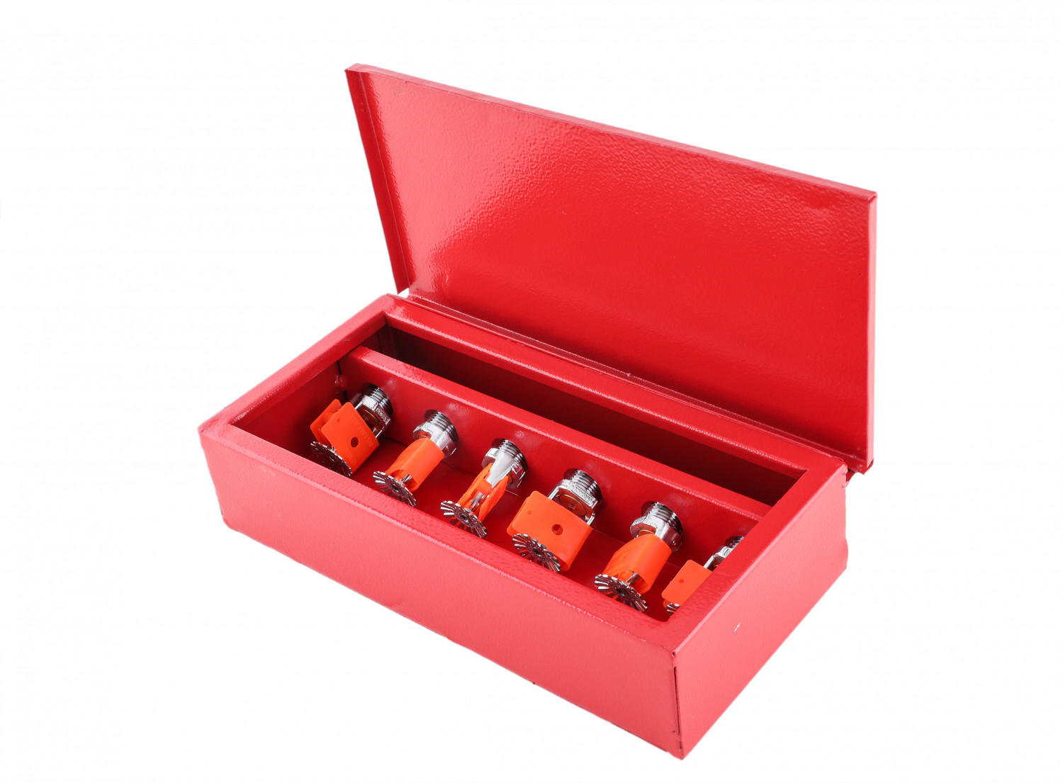 Fire Sprinkler Spare 6 Head Box provides storage for spare sprinklers heads and head wrenches. For use with 1/2" and 3/4" fire sprinkler heads. Hinged cover and pre-drilled holes and slots for easy mounting. Powder coated Red. **Does not include fire sprinkler heads. Meets NFPA requirement for Spare Head storage. Slotted for easy mounting. Powder coated Red. Please note this box is sold empty and does NOT contain fire sprinklers. Fire sprinkler heads and wrenches sold separately.
