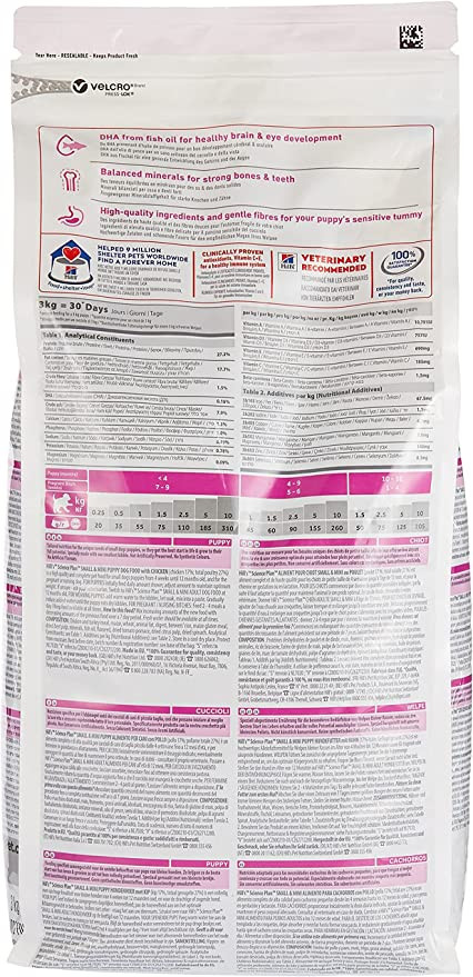 Big on Love, Small in Size. HILL’S SCIENCE PLAN Small & Mini Puppy dog food with Chicken is tailored nutrition for the developmental needs of Small & Mini puppies, so they get the best start in life & grow to their full potential. Specially made with our smallest kibble.
