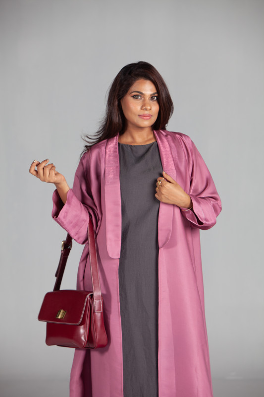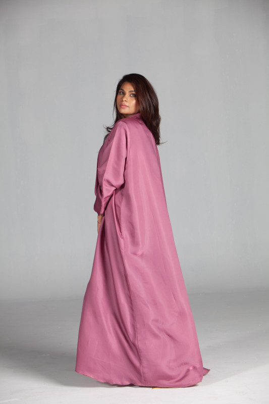 Type: Pinkish Rotana Fabric Abaya, Korea Fabric, Custom Color fabric Abaya, Tailor Designed, Front Open