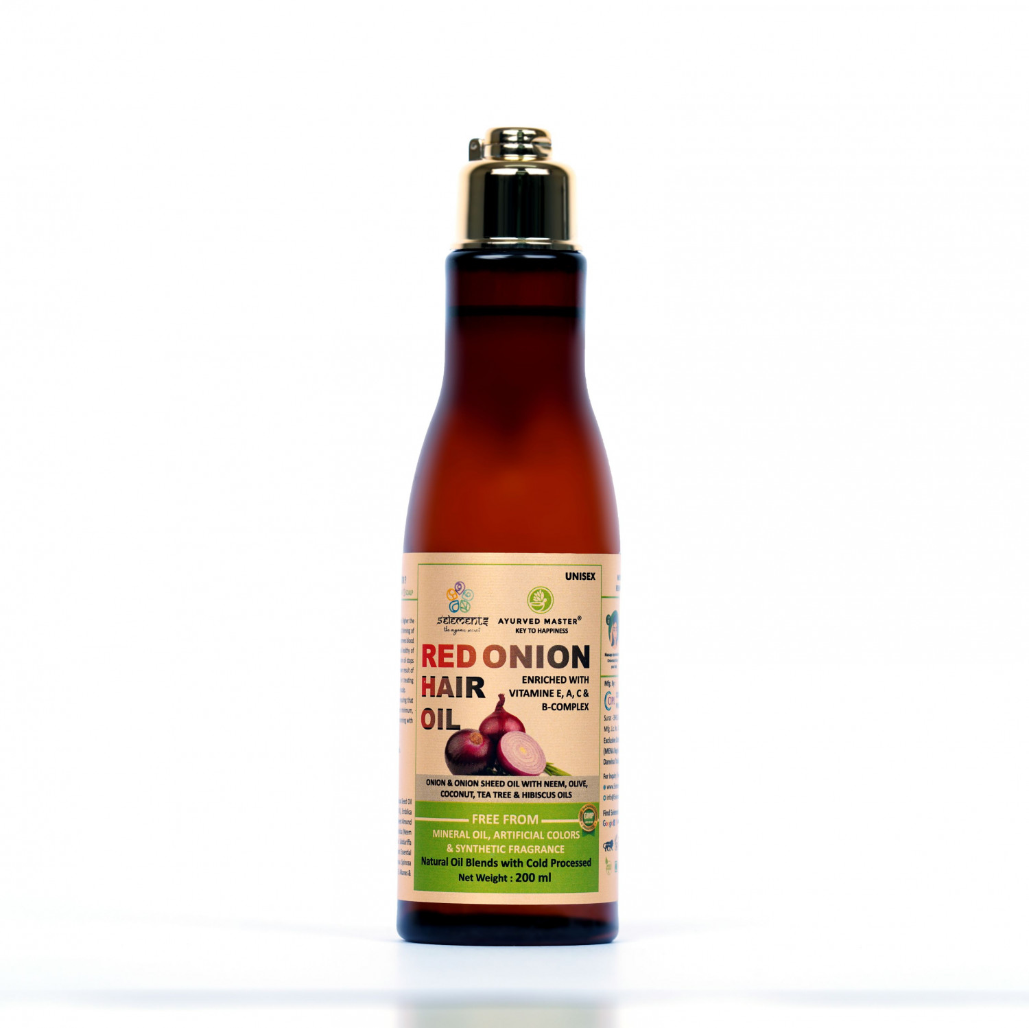 The Red Onions are high in Flavonoids and Fibers, Higher the Sulphur content, more helps reduce breakage and thinning of hair. Sulphur is essential for regeneration of hair, improves blood circulation in the scalp, promotes hair growth and healthe of follicles. With natural & powerful antioxidants, onion oil stops premature greying of hair. Red onion oil have shown result of adding volume to hair when used regularly. For treating dandruff, it can be used ona weekly basis to clear the scalp.