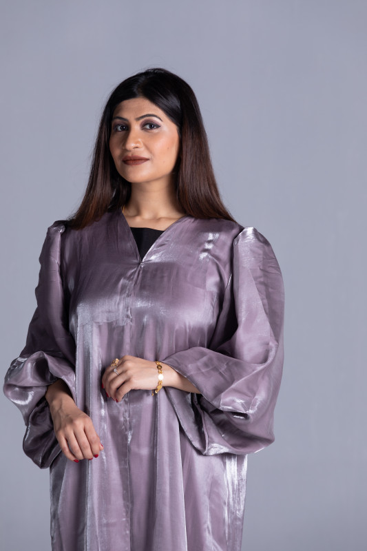 Type: Silky Organza Fabric, Balloon Sleeves, Long Abaya, Korean Fabric, Custom Color fabric Abaya, Tailor Designed, Front Open