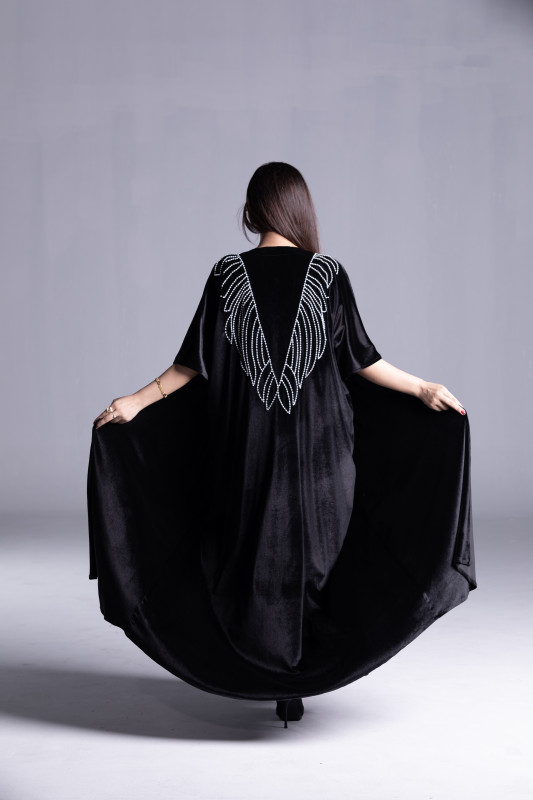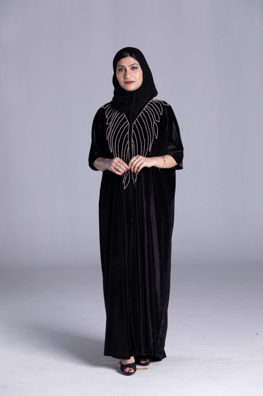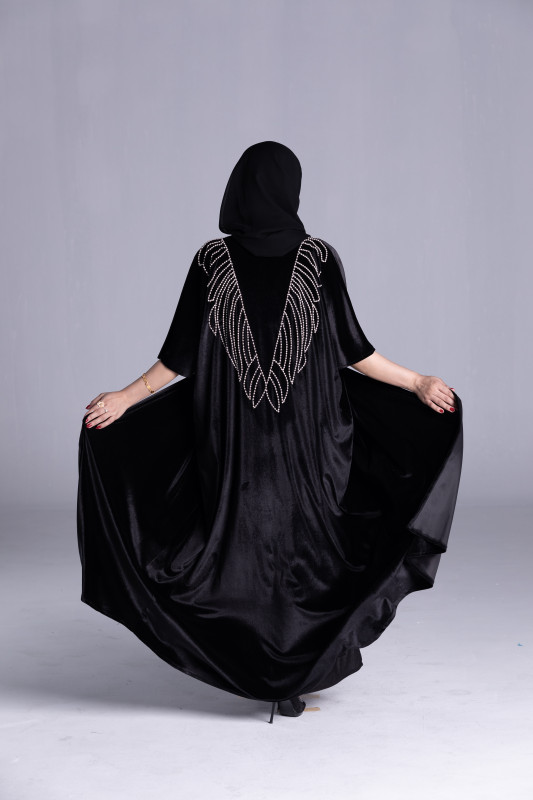 ·         Type: Black velvet Abaya, Custom Color fabric Abaya,  Pearls, Handmade,Tailor Designed, Close Model
