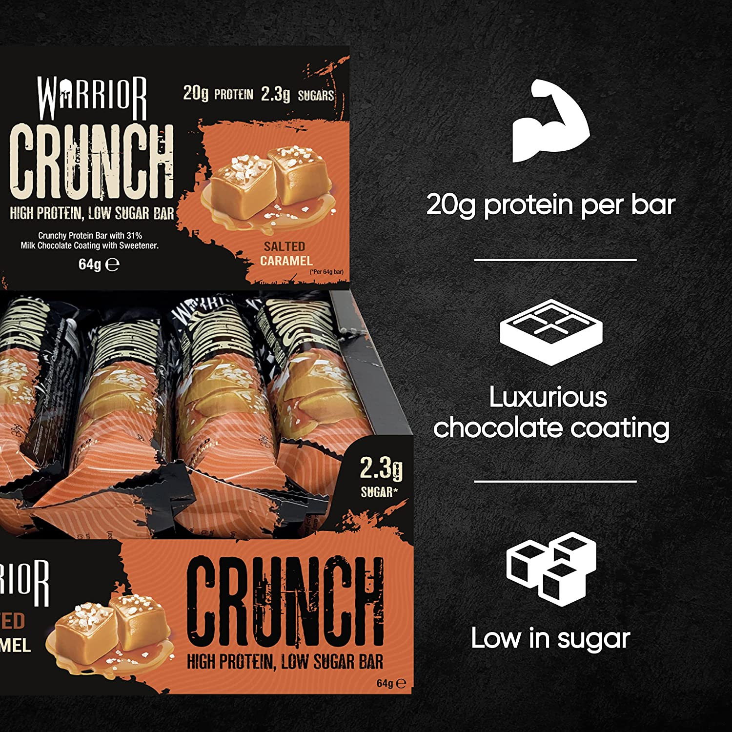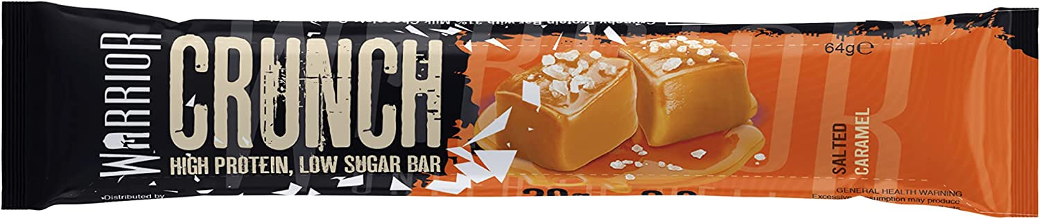 Warrior Crunch High Protein Low Carb Bar, 64g, Salted Caramel, Pack of 12