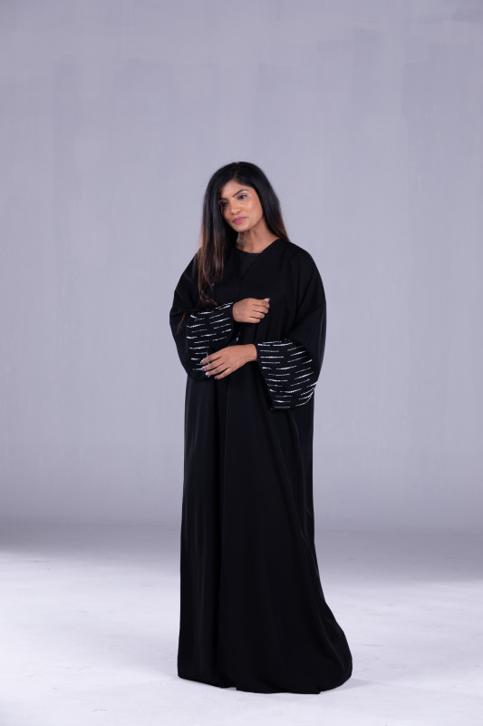 Type: Black Shade Abaya, Custom Color fabric Abaya, Handmade, Beads, Tailor Designed, Front Open